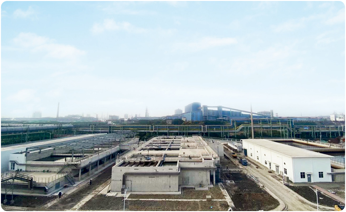 工程項目采用預(yù)處理+多流向強化澄清池+V型濾池處理工藝,在多流向中投加雙堿,控制合適的PH,去除污水中的硬度,同時去除水中懸浮物、磷酸鹽、COD等。污水經(jīng)過處理后大部分提升至生產(chǎn)新水管網(wǎng),少部分外排至廠區(qū)外。工程投資約9000萬,運行成本0.53元/噸。 出水主要指標(biāo):COD<30mg/L,SS<5mg/L,油類<2mg/L,硬度<100mg/L,總磷<0.5mg/L。工程采用“花園式工廠”“智能工程”的建造模式,極大提升了沙鋼廠區(qū)形象。